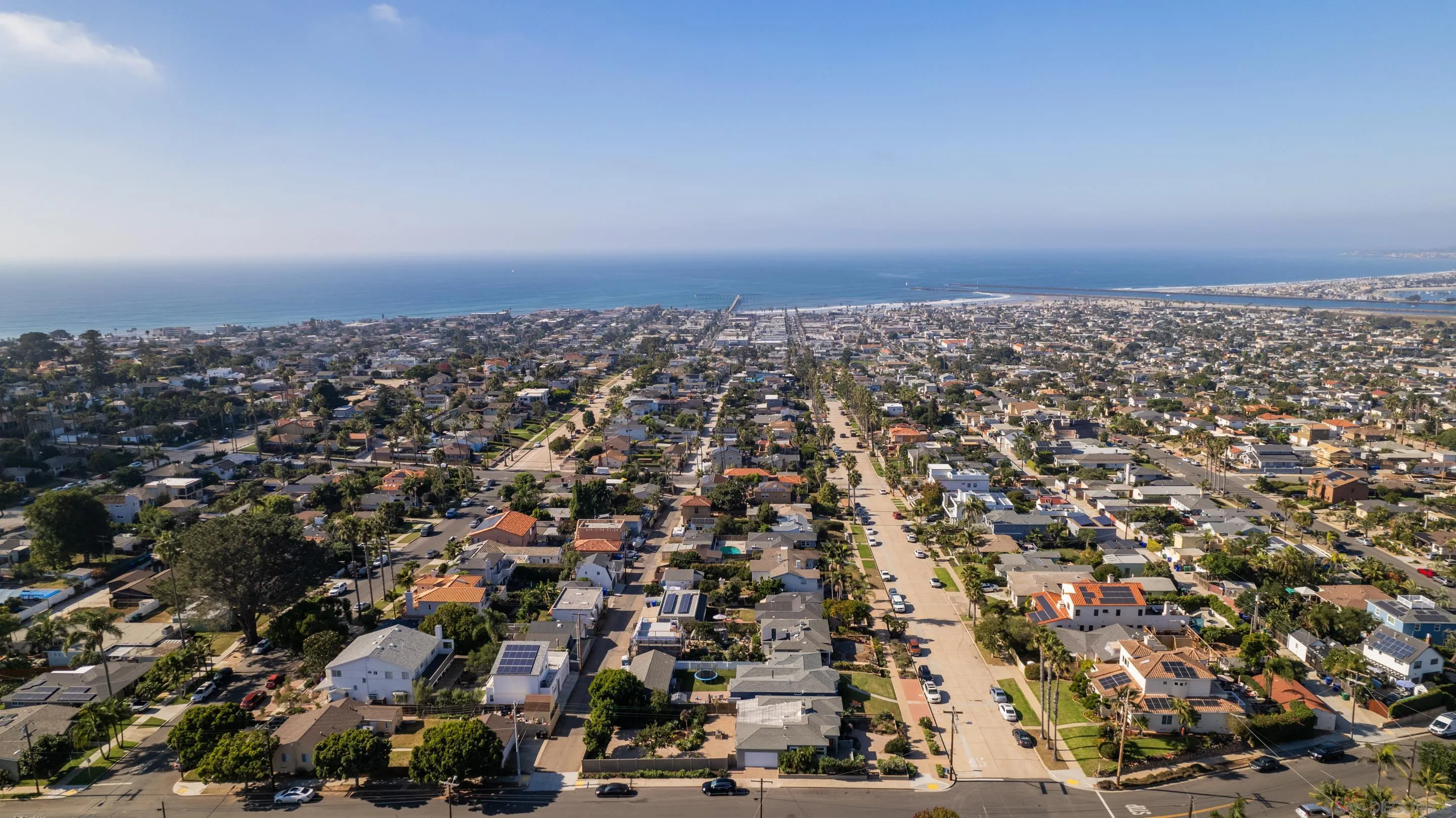 Perched atop the hill on the famed Newport Avenue, this charming 1,388 sqft single-level home offers captivating ocean and San Diego skyline views. This exceptional location offers walkability to vibrant beachfront areas, acclaimed dining venues, and boutique shops, while maintaining a tranquil hilltop setting. Sitting on a completely flat 7,000 sqft corner lot with alley access, this home features 3 bedrooms, 2 full bathrooms and an attached 2 car garage. Seamlessly blending timeless accents like original 1942 oak flooring with a brand new modern kitchen and other updates, this home epitomizes modern style and vintage character. Situated on a premium street with little through traffic, this home offers immense potential for expansion by adding a second story to capitalize on panoramic ocean views, while the large flat lot also provides the ability to build an ADU or simply enjoy the oversized backyard, perfect for entertaining. Soak in the ultimate 4th of July fire work views and experience the epitome of coastal living in this charming home. Embrace this opportunity to make it your own!
